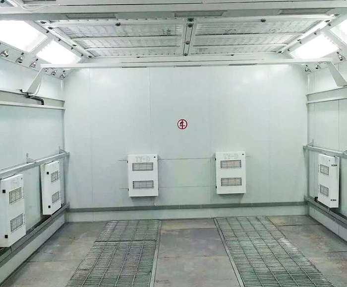 整個噴烤房為拼裝式結構,房體采用子母插式保溫噴塑墻板,密封、保 溫性能好,鋁合金包邊大門,門裝有觀察窗,可隨時觀察房內動態;房體側面裝有工作門,方便工作人員進出,不銹鋼熱交換器,換熱效率高,使用壽命長;選用進口過濾棉、低噪音高風量風機,確保噴漆效果。